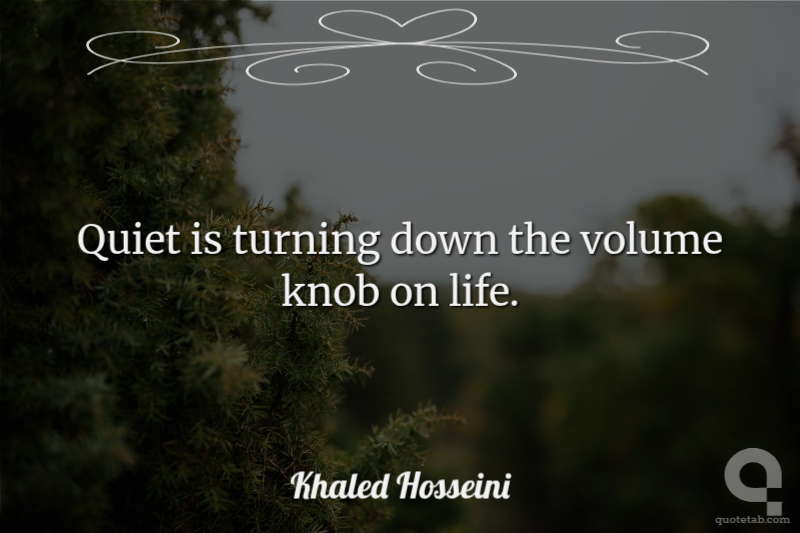 Quiet is turning down the volume knob on life. Khaled Hosseini