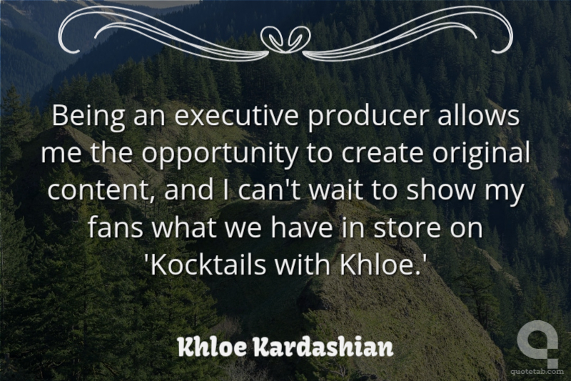 Being an executive producer allows me the opportunity to create original content, and I can't wait to show my fans what we have in store on 'Kocktails with Khloe.' Khloe Kardashian