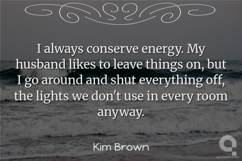 I always conserve energy. My husband likes to leave things on, but I go around and shut everything off, the lights we don't use in every room anyway. Kim Brown