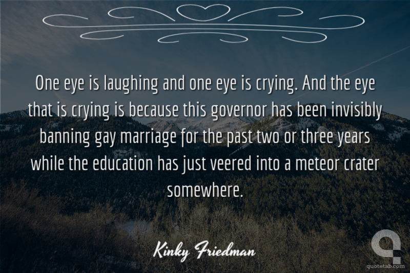 One eye is laughing and one eye is crying. And the eye that is crying is because this governor has been invisibly banning gay marriage for the past two or three years while the education has just veered into a meteor crater somewhere. Kinky Friedman