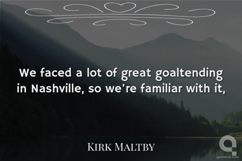 We faced a lot of great goaltending in Nashville, so we're familiar with it, Kirk Maltby