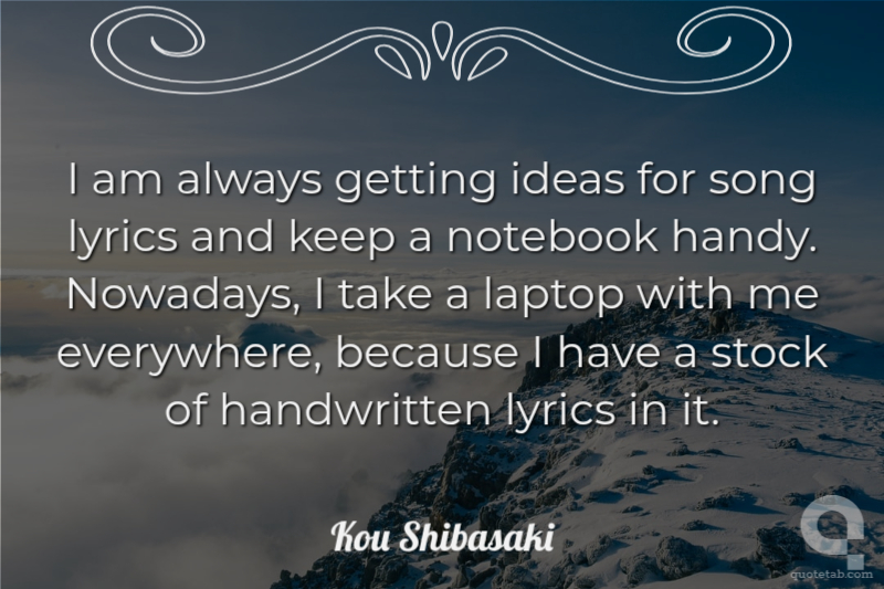 I am always getting ideas for song lyrics and keep a notebook handy. Nowadays, I take a laptop with me everywhere, because I have a stock of handwritten lyrics in it. Kou Shibasaki
