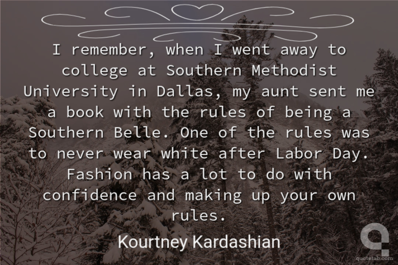 I remember, when I went away to college at Southern Methodist University in Dallas, my aunt sent me a book with the rules of being a Southern Belle. One of the rules was to never wear white after Labor Day. Fashion has a lot to do with confidence and making up your own rules. Kourtney Kardashian