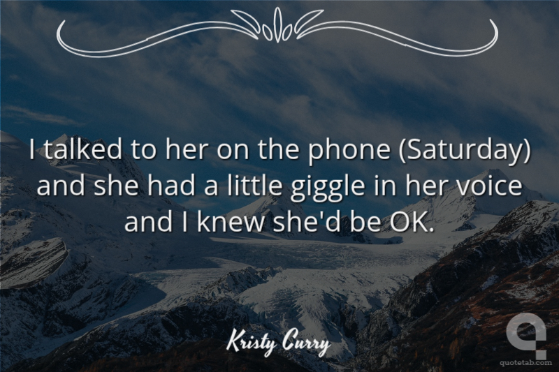 I talked to her on the phone (Saturday) and she had a little giggle in her voice and I knew she'd be OK. Kristy Curry