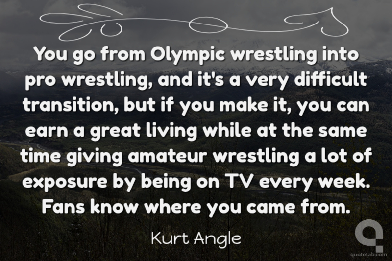 You go from Olympic wrestling into pro wrestling, and it's a very difficult transition, but if you make it, you can earn a great living while at the same time giving amateur wrestling a lot of exposure by being on TV every week. Fans know where you came from. Kurt Angle