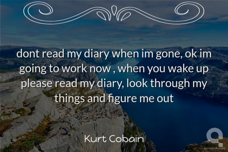 dont read my diary when im gone, ok im going to work now , when you wake up please read my diary, look through my things and figure me out Kurt Cobain