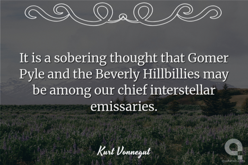 It is a sobering thought that Gomer Pyle and the Beverly Hillbillies may be among our chief interstellar emissaries. Kurt Vonnegut