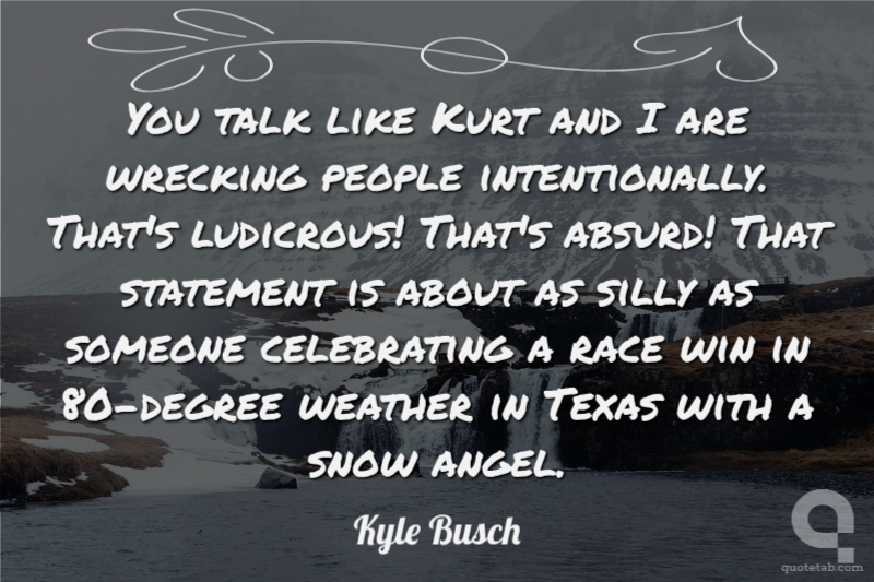 You talk like Kurt and I are wrecking people intentionally. That's ludicrous! That's absurd! That statement is about as silly as someone celebrating a race win in 80-degree weather in Texas with a snow angel. Kyle Busch