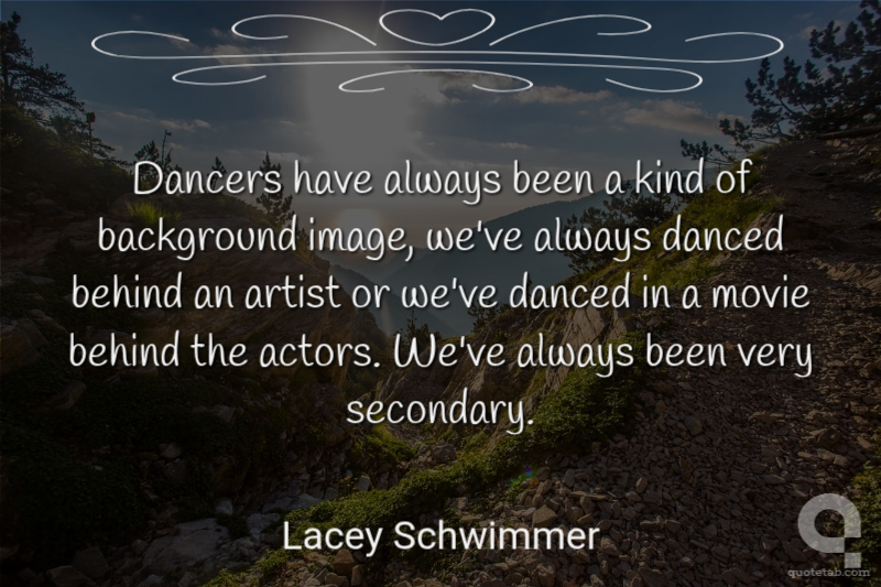 Dancers have always been a kind of background image, we've always danced behind an artist or we've danced in a movie behind the actors. We've always been very secondary. Lacey Schwimmer