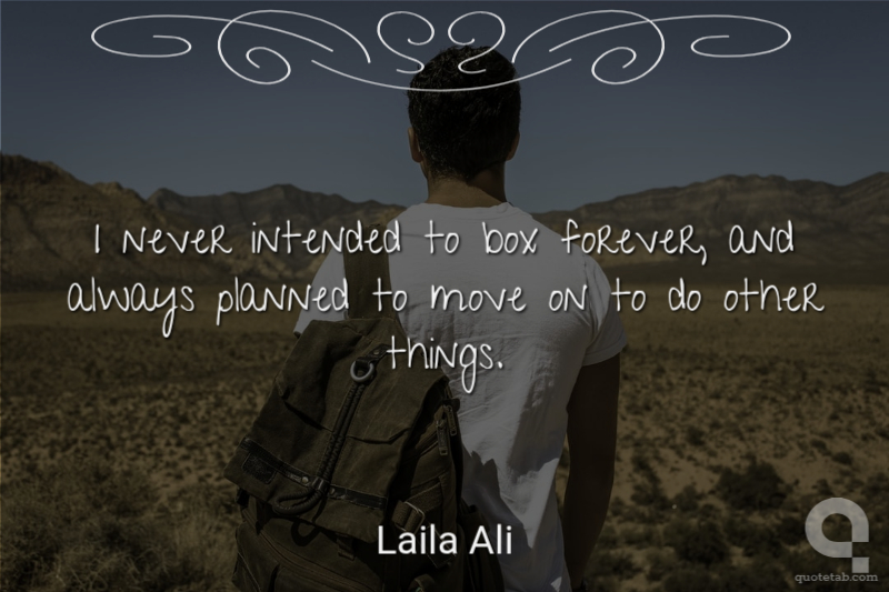 I never intended to box forever, and always planned to move on to do other things. Laila Ali