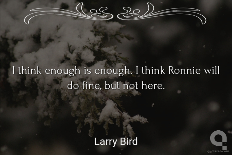 Larry Bird I think enough is enough. I think Ronnie will do fine, but not here.