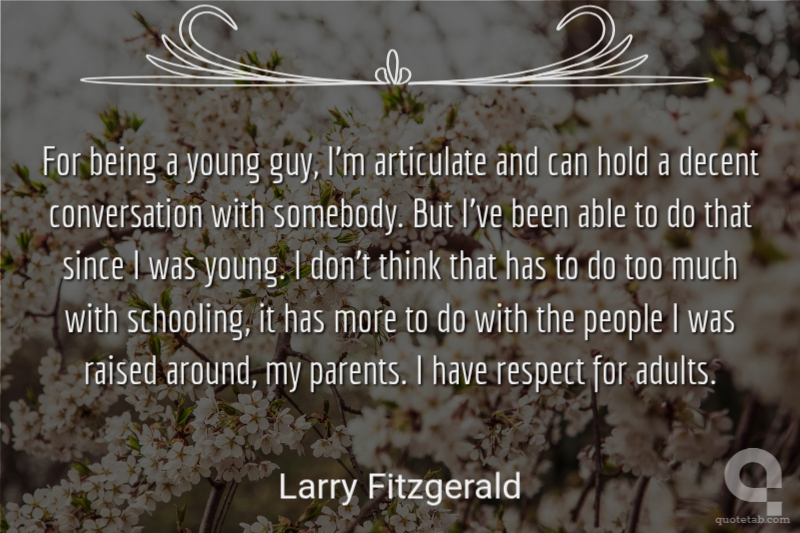 For being a young guy, I'm articulate and can hold a decent conversation with somebody. But I've been able to do that since I was young. I don't think that has to do too much with schooling, it has more to do with the people I was raised around, my parents. I have respect for adults. Larry Fitzgerald