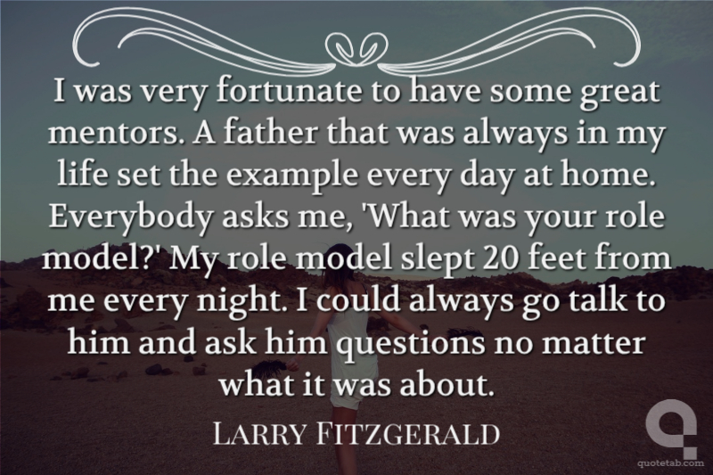 I was very fortunate to have some great mentors. A father that was always in my life set the example every day at home. Everybody asks me, 'What was your role model?' My role model slept 20 feet from me every night. I could always go talk to him and ask him questions no matter what it was about. Larry Fitzgerald