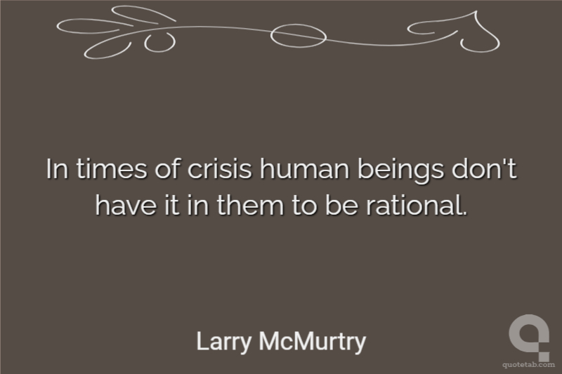 In times of crisis human beings don't have it in them to be rational. Larry McMurtry
