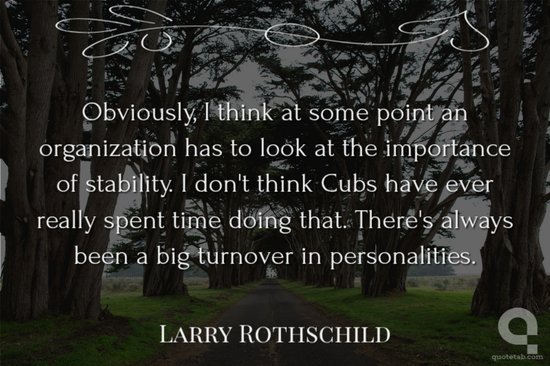 Obviously, I think at some point an organization has to look at the importance of stability. I don't think Cubs have ever really spent time doing that. There's always been a big turnover in personalities. Larry Rothschild