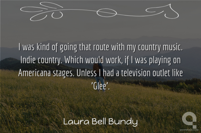 I was kind of going that route with my country music. Indie country. Which would work, if I was playing on Americana stages. Unless I had a television outlet like 'Glee'. Laura Bell Bundy