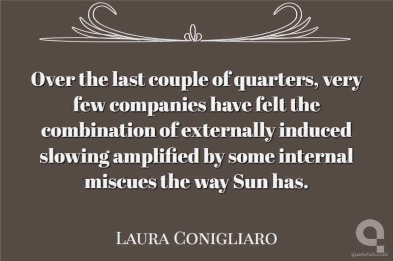 Over the last couple of quarters, very few companies have felt the combination of externally induced slowing amplified by some internal miscues the way Sun has. Laura Conigliaro
