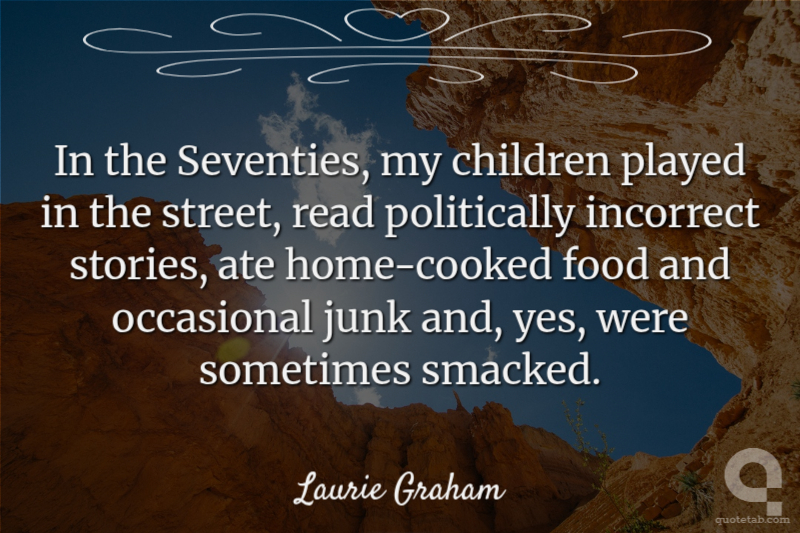 In the Seventies, my children played in the street, read politically incorrect stories, ate home-cooked food and occasional junk and, yes, were sometimes smacked. Laurie Graham