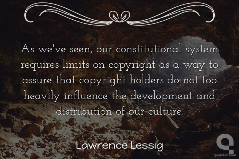 As we've seen, our constitutional system requires limits on copyright as a way to assure that copyright holders do not too heavily influence the development and distribution of our culture. Lawrence Lessig