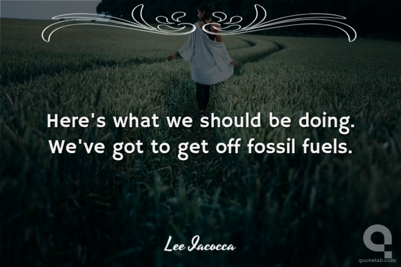 Here's what we should be doing. We've got to get off fossil fuels. Lee Iacocca
