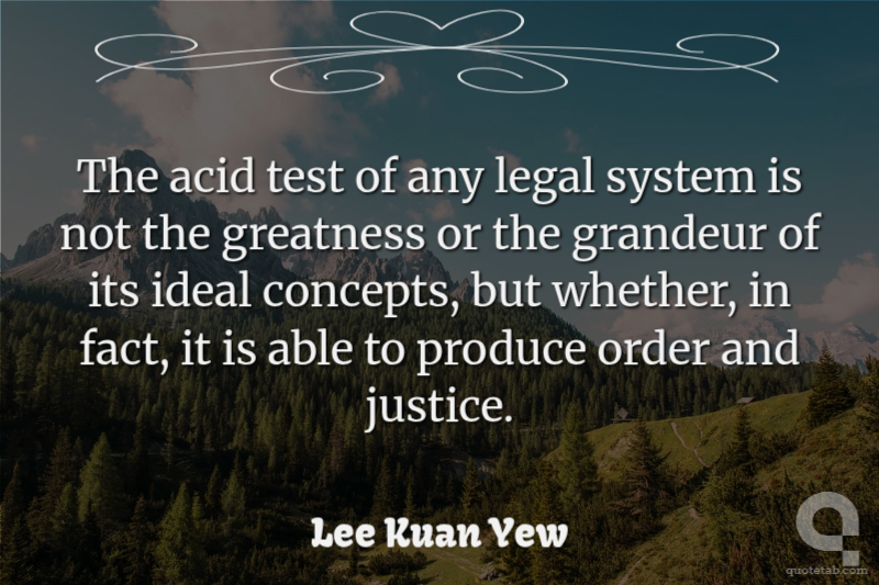 The acid test of any legal system is not the greatness or the grandeur of its ideal concepts, but whether, in fact, it is able to produce order and justice. Lee Kuan Yew