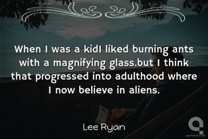 When I was a kidI liked burning ants with a magnifying glass.but I think that progressed into adulthood where I now believe in aliens. Lee Ryan