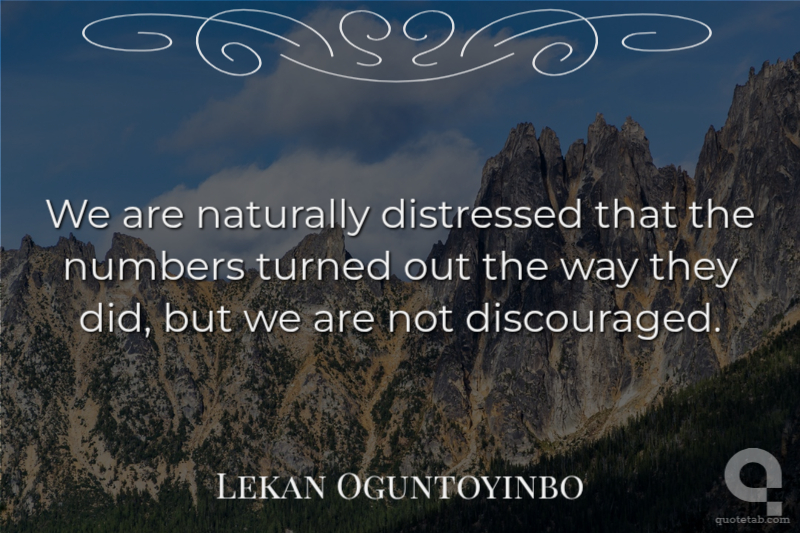 We are naturally distressed that the numbers turned out the way they did, but we are not discouraged. Lekan Oguntoyinbo