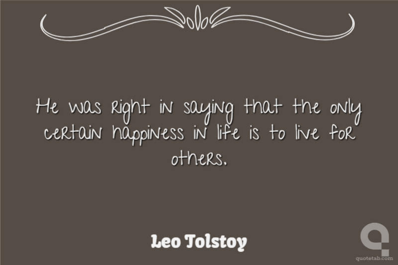 He was right in saying that the only certain happiness in life is to live for others. Leo Tolstoy
