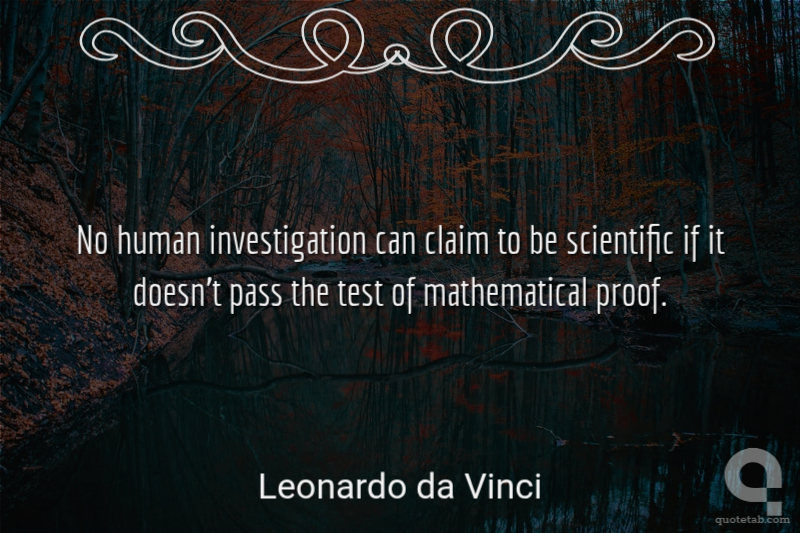 No human investigation can claim to be scientific if it doesn't pass the test of mathematical proof. Leonardo da Vinci