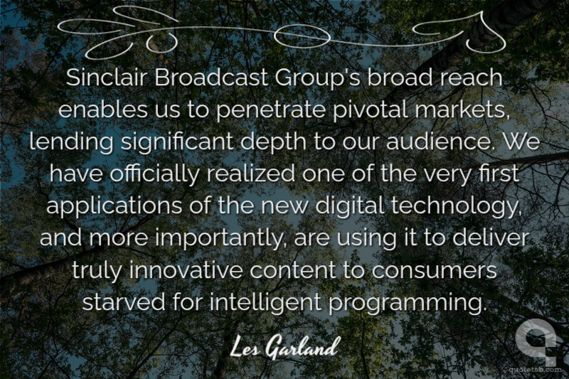 Sinclair Broadcast Group's broad reach enables us to penetrate pivotal markets, lending significant depth to our audience. We have officially realized one of the very first applications of the new digital technology, and more importantly, are using it to deliver truly innovative content to consumers starved for intelligent programming. Les Garland