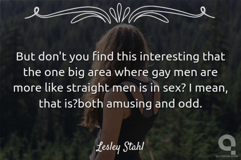 But don't you find this interesting that the one big area where gay men are more like straight men is in sex? I mean, that is?both amusing and odd. Lesley Stahl