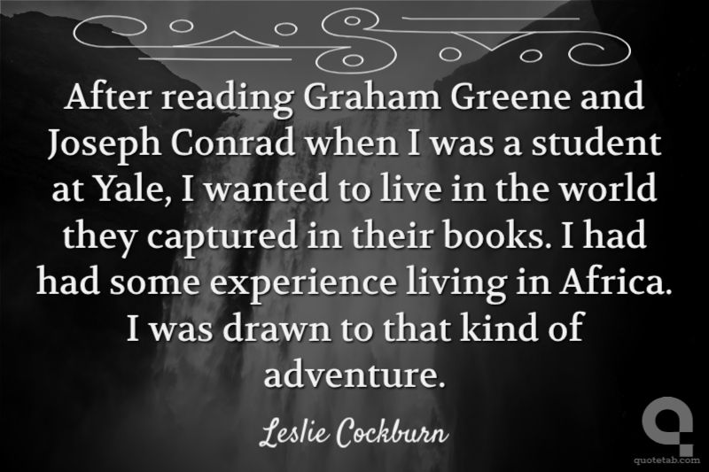 After reading Graham Greene and Joseph Conrad when I was a student at Yale, I wanted to live in the world they captured in their books. I had had some experience living in Africa. I was drawn to that kind of adventure. Leslie Cockburn