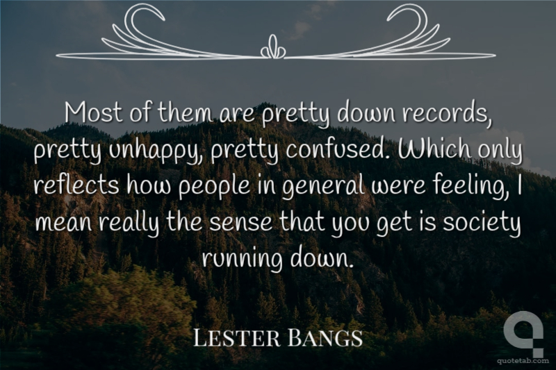 Most of them are pretty down records, pretty unhappy, pretty confused. Which only reflects how people in general were feeling, I mean really the sense that you get is society running down. Lester Bangs