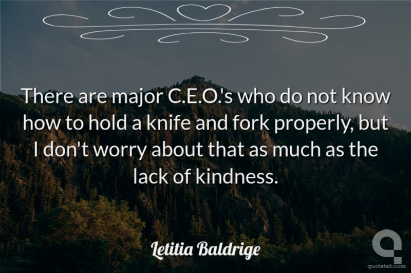 There are major C.E.O.'s who do not know how to hold a knife and fork properly, but I don't worry about that as much as the lack of kindness. Letitia Baldrige