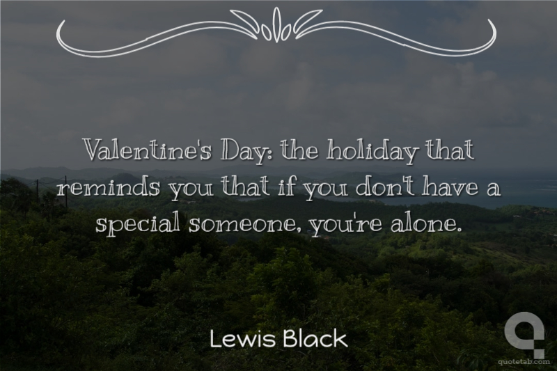 Valentine's Day: the holiday that reminds you that if you don't have a special someone, you're alone. Lewis Black