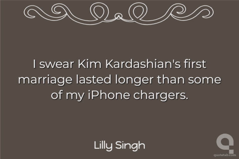I swear Kim Kardashian's first marriage lasted longer than some of my iPhone chargers. Lilly Singh