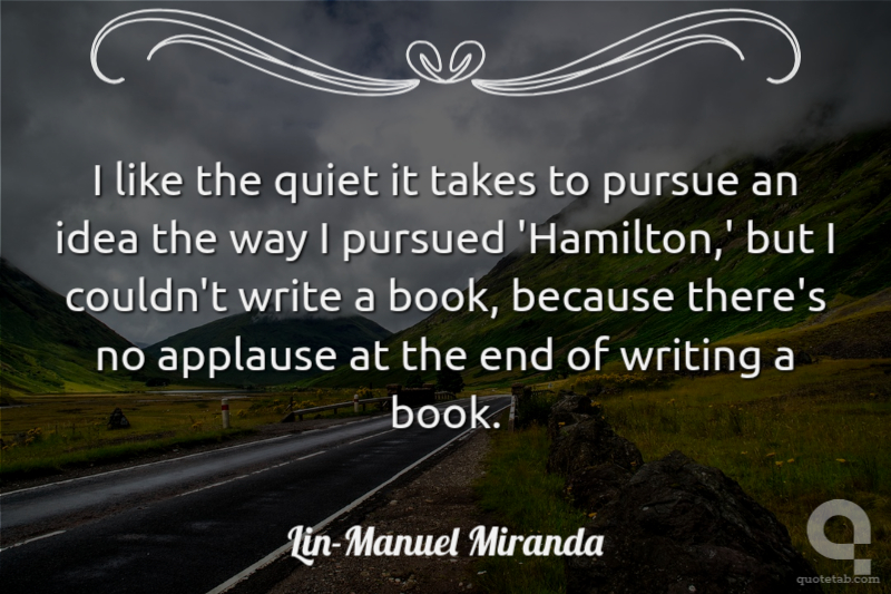 I like the quiet it takes to pursue an idea the way I pursued 'Hamilton,' but I couldn't write a book, because there's no applause at the end of writing a book. Lin-Manuel Miranda