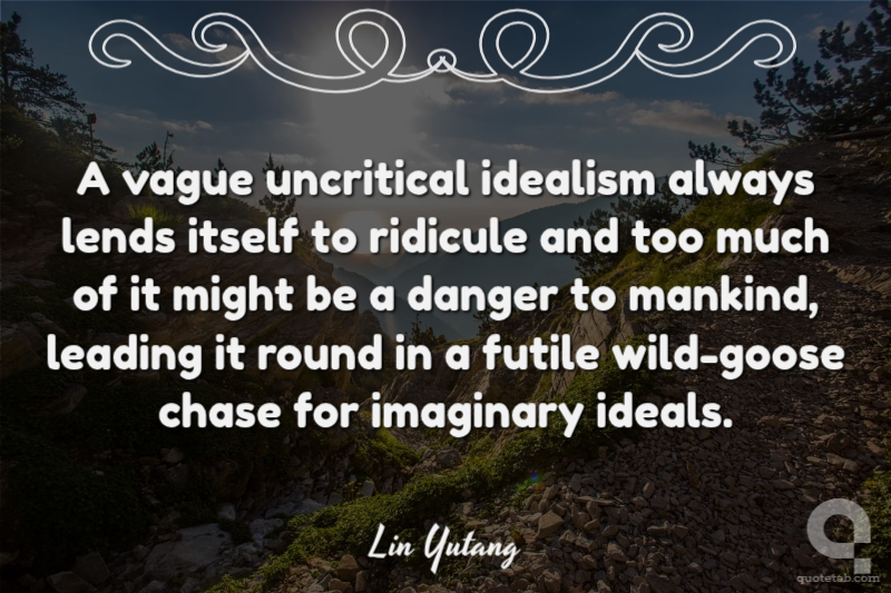 A vague uncritical idealism always lends itself to ridicule and too much of it might be a danger to mankind, leading it round in a futile wild-goose chase for imaginary ideals. Lin Yutang
