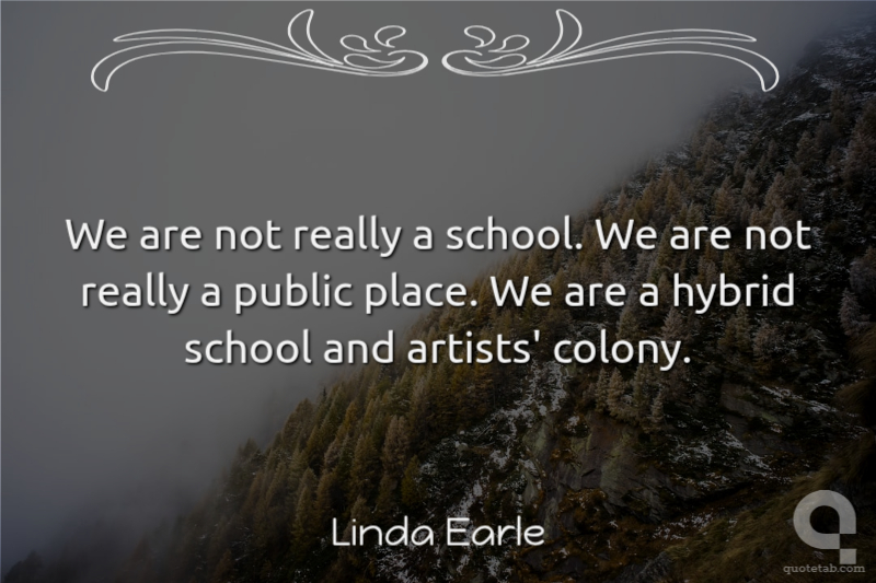 We are not really a school. We are not really a public place. We are a hybrid school and artists' colony. Linda Earle