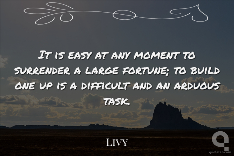 It is easy at any moment to surrender a large fortune; to build one up is a difficult and an arduous task. Livy