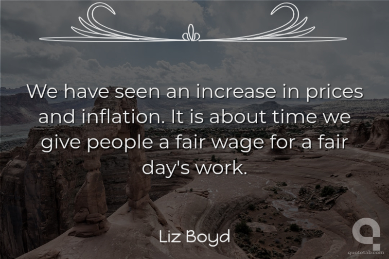 We have seen an increase in prices and inflation. It is about time we give people a fair wage for a fair day's work. Liz Boyd