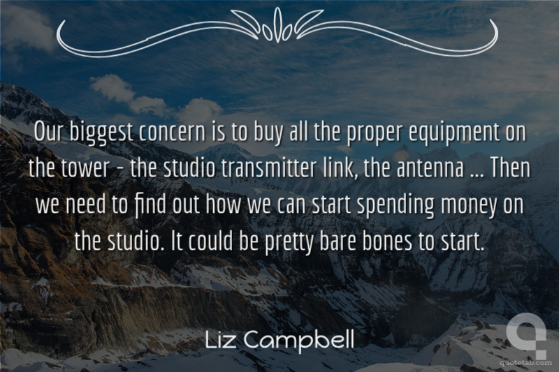 Our biggest concern is to buy all the proper equipment on the tower - the studio transmitter link, the antenna ... Then we need to find out how we can start spending money on the studio. It could be pretty bare bones to start. Liz Campbell