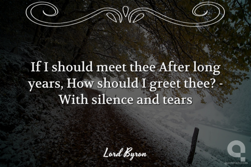 If I should meet thee After long years, How should I greet thee? - With silence and tears Lord Byron