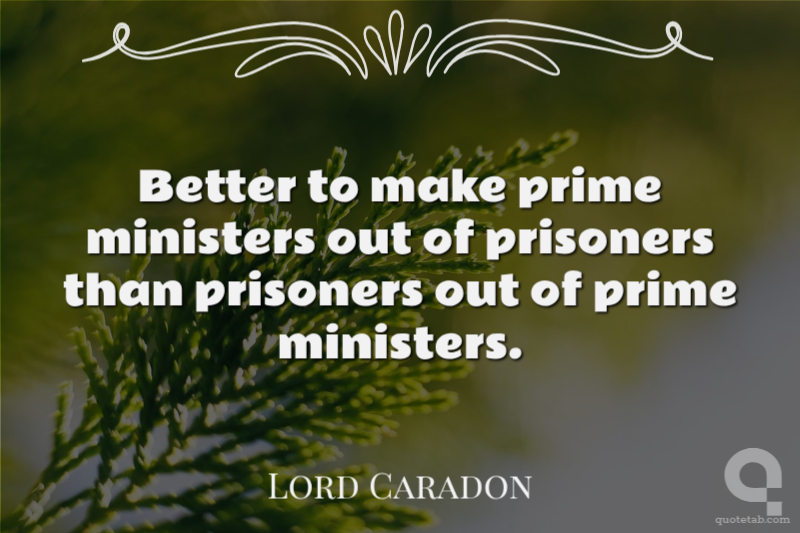 Better to make prime ministers out of prisoners than prisoners out of prime ministers. Lord Caradon