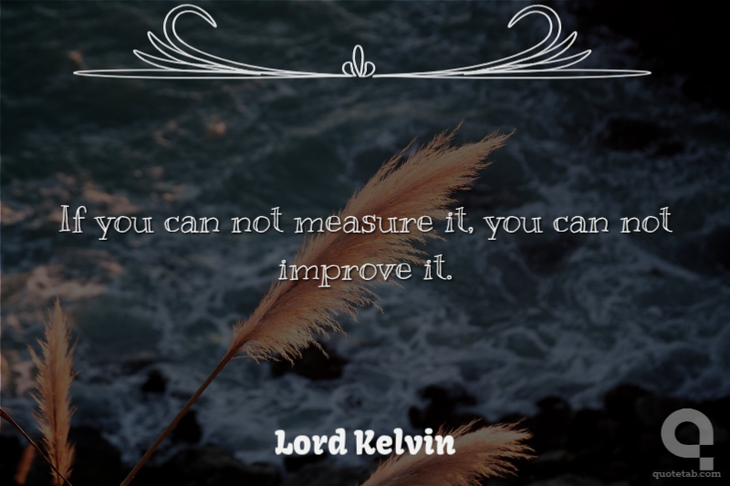 Measurement is the first step that leads to control and eventually to improvement. If you can’t measure something, you can’t understand it. If you can’t understand it, you can’t control it. If you can’t control it, you can’t improve it. James Harrington