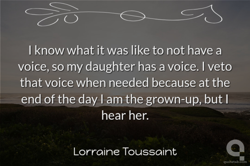 I know what it was like to not have a voice, so my daughter has a voice. I veto that voice when needed because at the end of the day I am the grown-up, but I hear her. Lorraine Toussaint