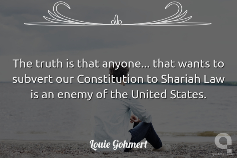 The truth is that anyone... that wants to subvert our Constitution to Shariah Law is an enemy of the United States. Louie Gohmert