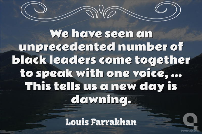 We have seen an unprecedented number of black leaders come together to speak with one voice, ... This tells us a new day is dawning. Louis Farrakhan