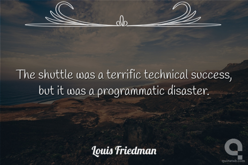 The shuttle was a terrific technical success, but it was a programmatic disaster. Louis Friedman