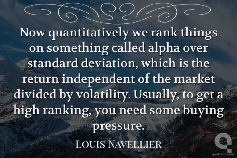 Now quantitatively we rank things on something called alpha over standard deviation, which is the return independent of the market divided by volatility. Usually, to get a high ranking, you need some buying pressure. Louis Navellier